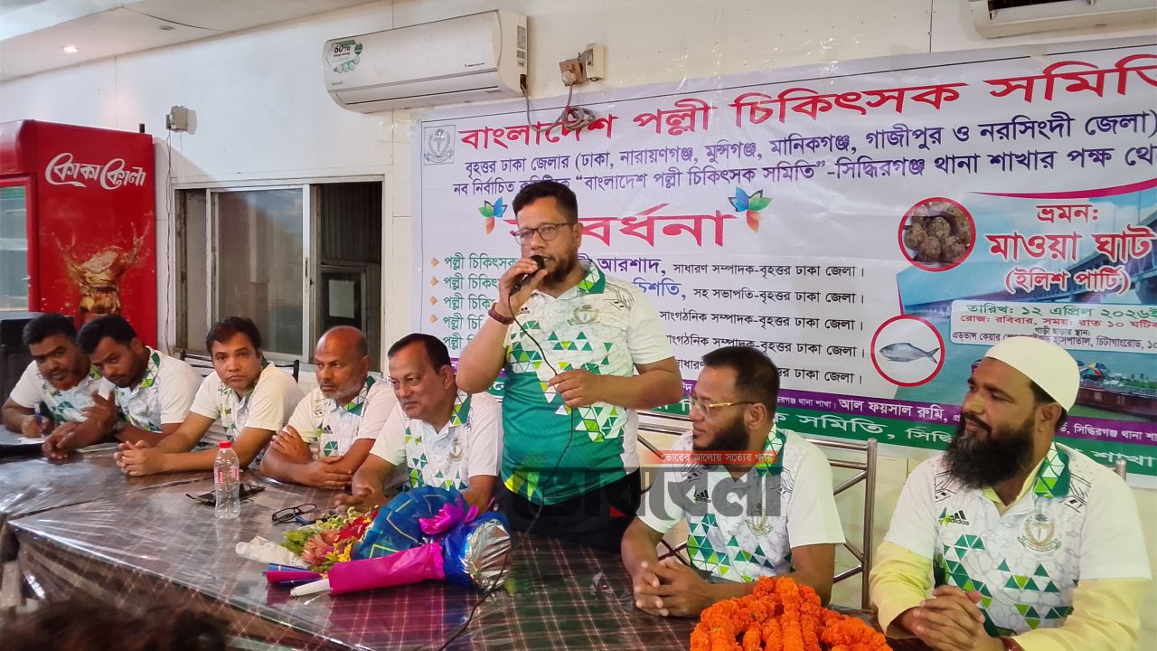 সংবর্ধনা অনুষ্ঠানে বক্তব্য প্রদানকালে বৃহত্তর ঢাকা জেলার নবনির্বাচিত সাংগঠনিক সম্পাদক ও সিদ্ধিরগঞ্জ থানা শাখার মডেল সভাপতি মোঃ আবদুল জব্বার বলেন, “বাংলাদেশ পল্লী চিকিৎসক সমিতি দীর্ঘদিন ধরে সাধারণ মানুষের প্রাথমিক স্বাস্থ্যসেবা নিশ্চিত করতে নিরলসভাবে কাজ করে যাচ্ছে। নবনির্বাচিত কমিটির নেতৃত্বে আমরা সংগঠনকে আরও শক্তিশালী ও গতিশীল করতে চাই। পাশাপাশি পল্লী চিকিৎসকদের প্রশিক্ষণ, মানোন্নয়ন এবং সেবার পরিধি বাড়াতে আমরা একসাথে কাজ করবো।”